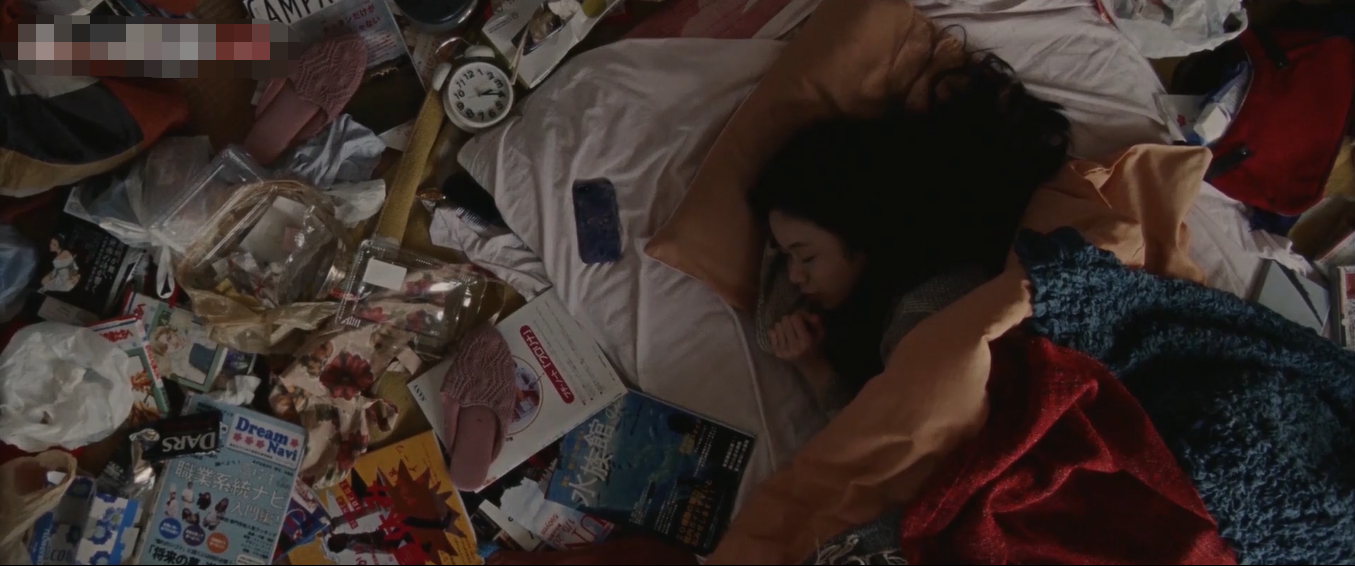 宁子躺在床上艰难的睁开眼,她和电话那头的姐姐问早,尽管此时已是下午4点。房间里衣服、食物等物品杂乱的摆放着,宁子的生活也杂乱无章、毫无目的,而睡觉占据了绝大部分时间。