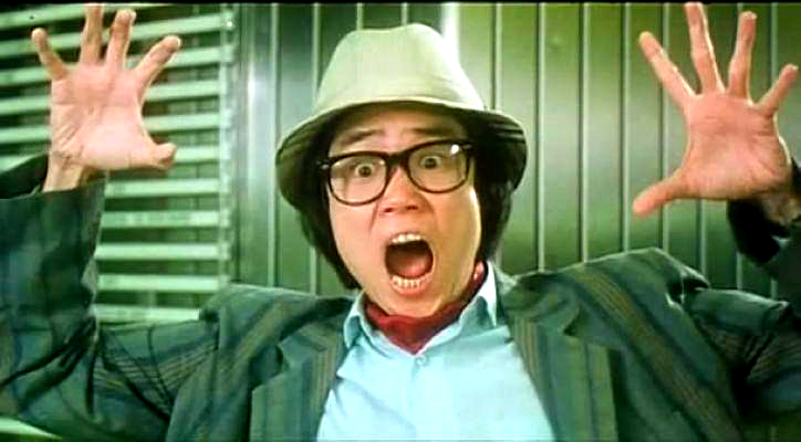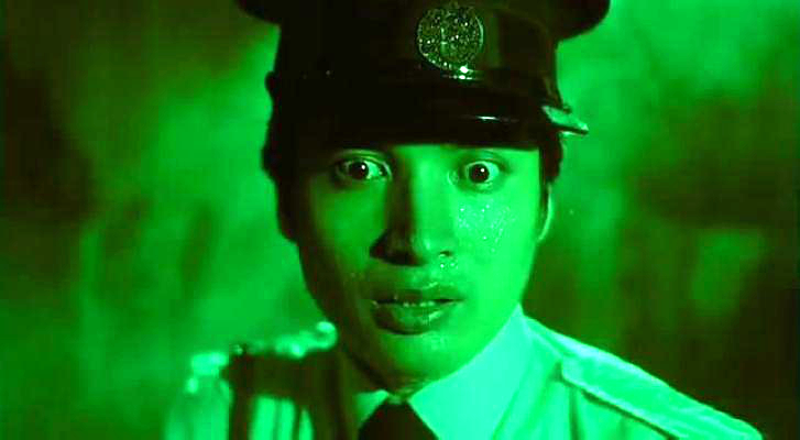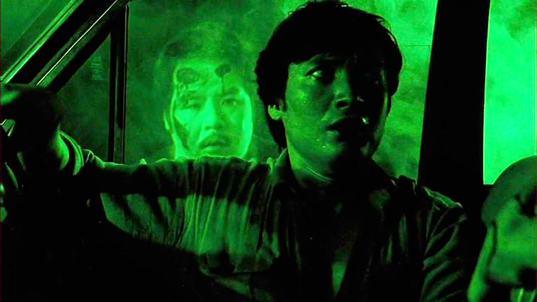 最惨的则是肥仔郑则仕。他独自开车上路,不曾想却一路开到了鬼门关。一股股白烟泛起幽幽的绿光,纵然没有恐怖的背景音乐,但郑则仕扭曲而又渗人的表情堪称“昆池岩大眼妹”的凄厉版。