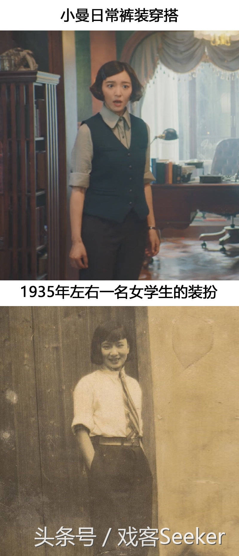秦小曼刚刚毕业,所穿的服饰也和当时流行的学生装类似