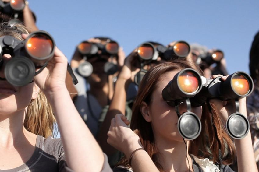 影片一开始,一个警察侃侃而谈给大家打预防针,告诉大家前方高能,请谨慎观看,但是说这个有什么用呢,大家该看还是看,而且还用望远镜看,原来这群吃瓜群众是在看一个垃圾场,话说国外真的就那么干净吗,看个垃圾场还要组团到沙漠中来。