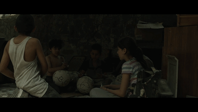 或许粉笔不能实现自己对于童话世界的美好愿望,但是现实中还是可以找到一处暂时远离暴力的儿童乐园。在这里,孩子们拥有足球带来的快乐,有对于梦想的憧憬和对于失去亲人最真挚的思念,他们可以用自己的想象力为自己构筑一个坚固的堡垒隔绝暴力的世界。