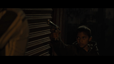破败的街道,昏黄的街灯下萨内来到醉酒的卡科身后,乘机偷走了卡科的枪和手机,当萨内把枪口对准卡科的时候却无法扣动扳机。毕竟是孩子,无法狠心杀了一个人。