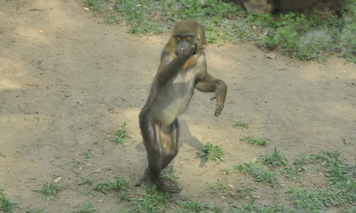 要练好眼神,首先要了解猴子用眼的特点。猴子的眼睛始终是圆溜溜的,习惯正眼看人,从不斜视旁观,若要观左右事物,则转头而不转眼。眨眼时,上眼皮动而眉毛不动。要学猴眼,只有把眼瞪起来才能圆,眉毛上提,现出上眼眶,再眨眼才能眉毛不动。初练时,瞪眼时间先可短些,逐步延长,先练瞪眼,后练眨眼,然后再结合具体动作表现猿猴运动中的各种神态。