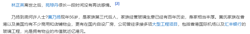 苑琼丹最终在2004年收获和“玻璃大王”亿万富豪黄乃扬的爱情。