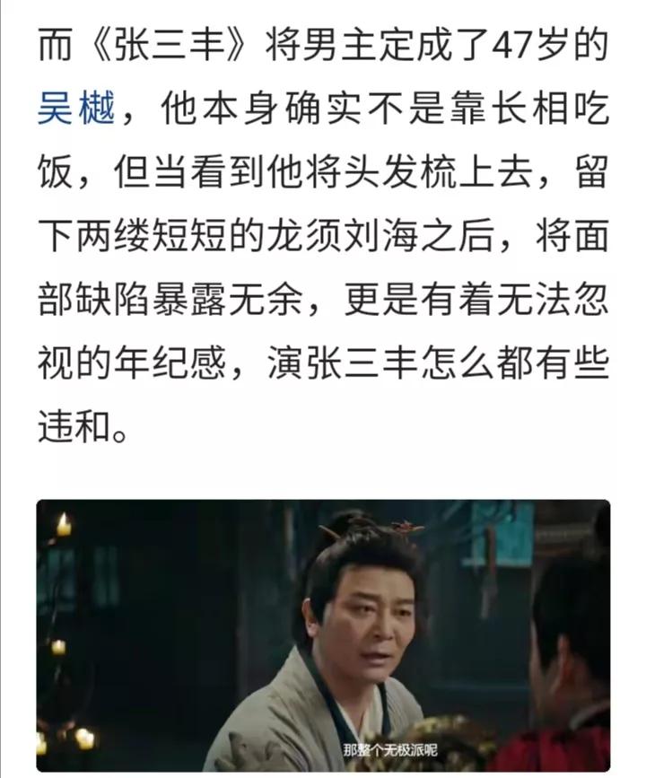 我就耐着性子继续看,耐着性子等待着张三丰的出场。没想到吴樾版的张三丰一出现,我的心就基本彻底凉了。