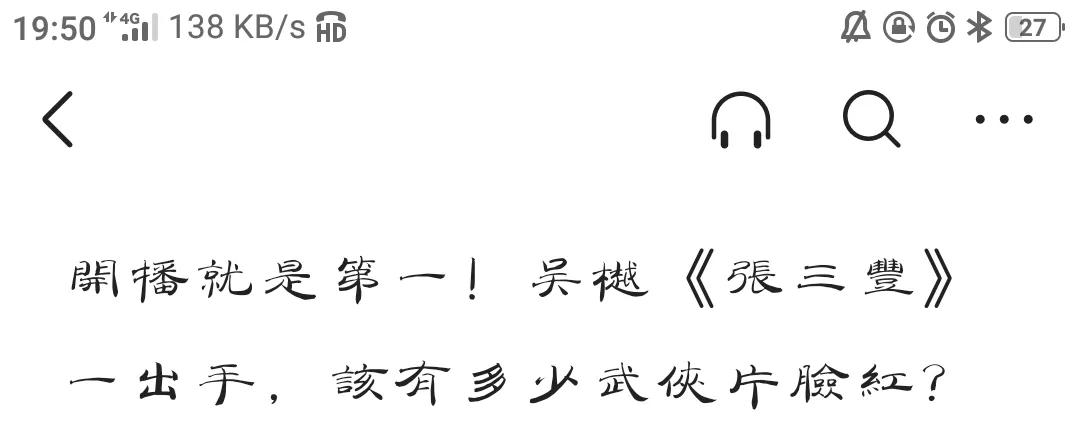 但我仍不死心,想要继续往后看,想看看后面有没有什么反转?心里还抱着最后一点希望。毕竟“开播就是第一!吴樾《张三丰》一出手,该有多少武侠片脸红?”这样的标题,应该不是空穴来风。