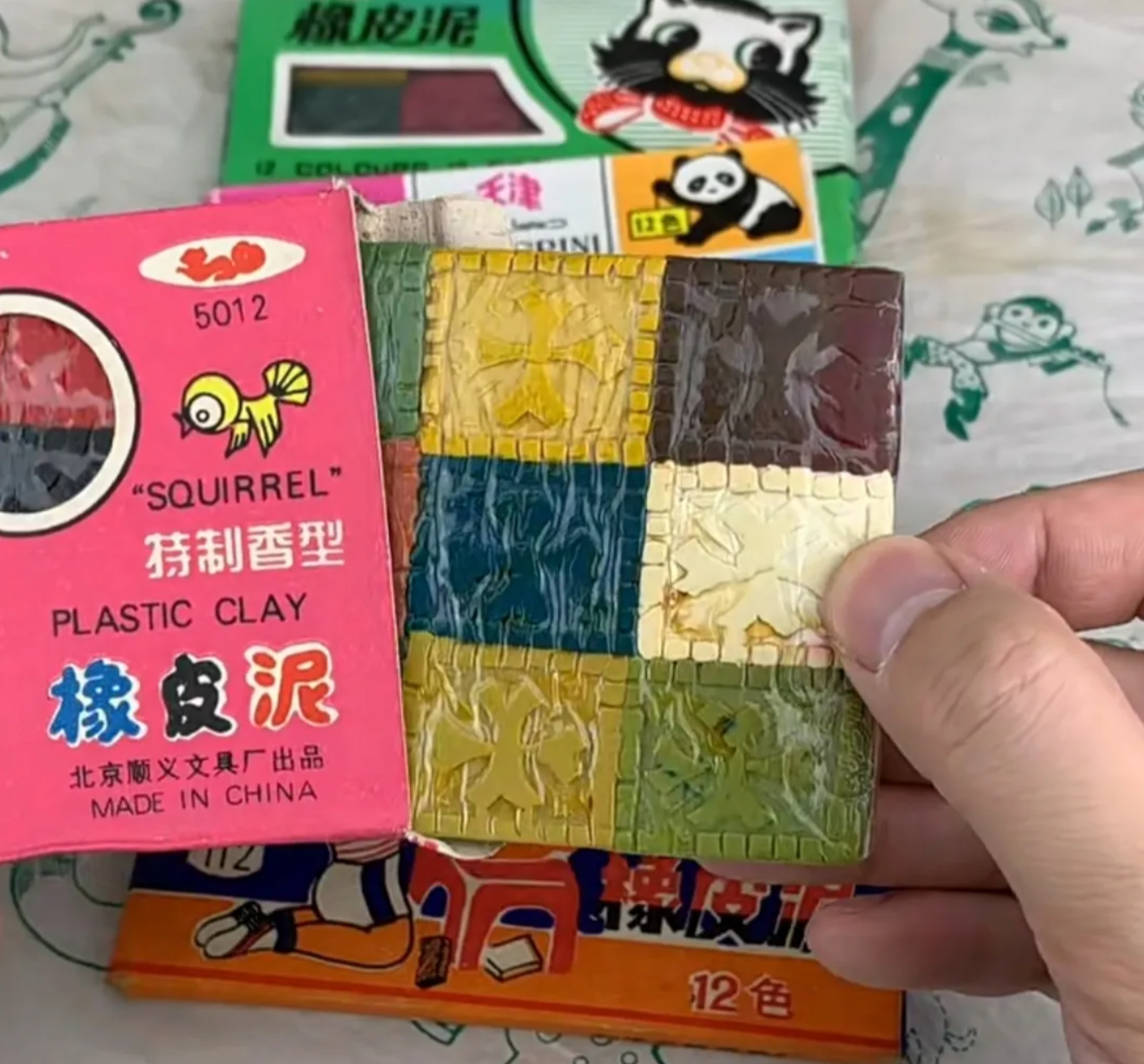 但在80后的记忆里,橡皮泥都是像图中这样一小块一小块地放在纸盒子里的,为了防止晾干,橡皮泥会被一层塑料薄膜裹上,小时候最开心的事情就是撕掉这层塑料膜了。