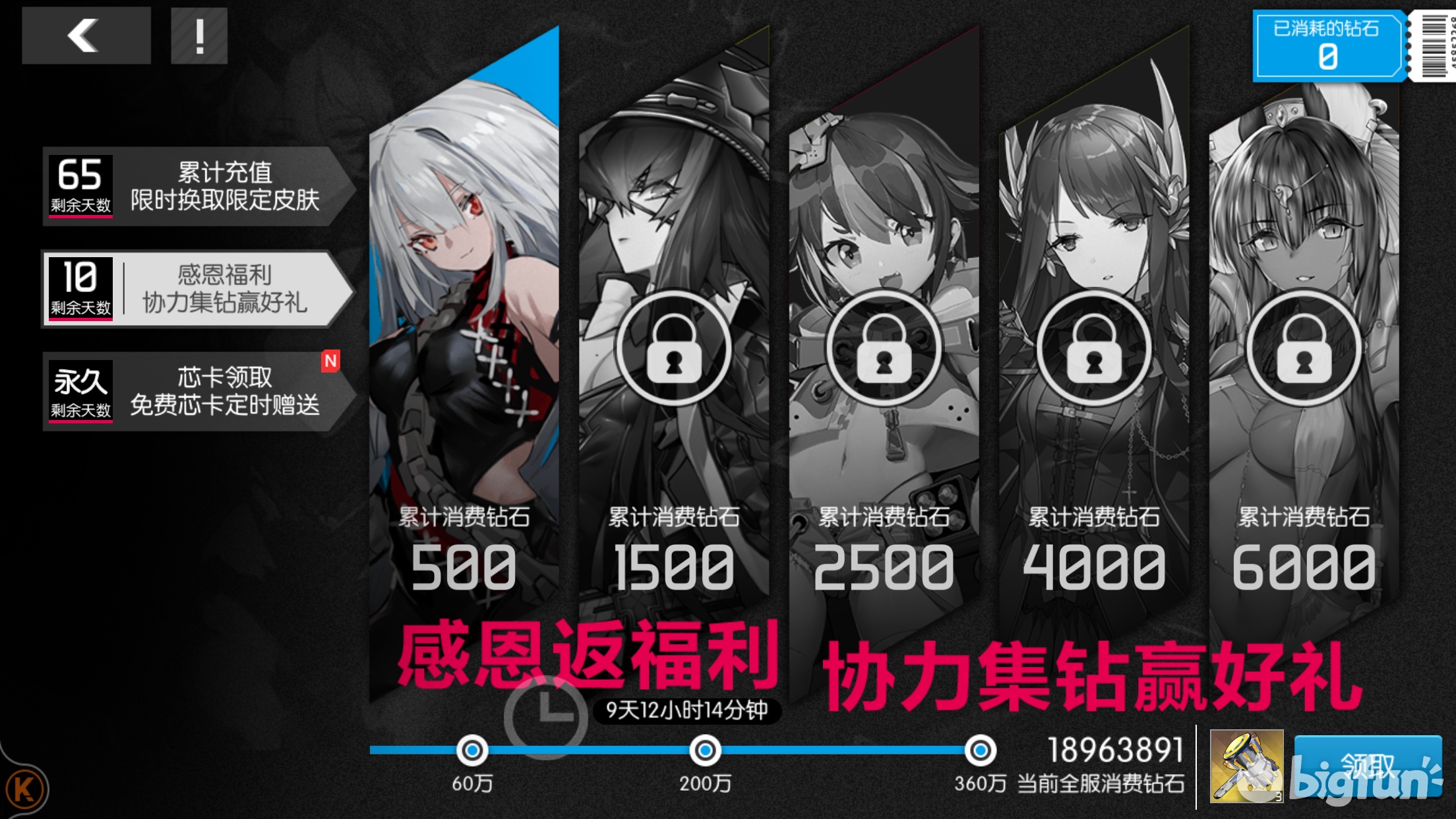 - 第二个是累计消费活动+全服消费钻石活动,全服消费360钻石还能够领取3个招募核心。这个钻石是你花钱买的也可以,游戏内任务免费获取的也可以,搭配一块钱的礼包可以很轻松的领取消费2500档位的活动礼包。还算是比较划算的。而累计消费6000钻石则可以获得一套五星幻梦核,属于前期提升实力必拿奖励,拿到了角色属性提高幅度会很,大目前仅剩8天的时间了。