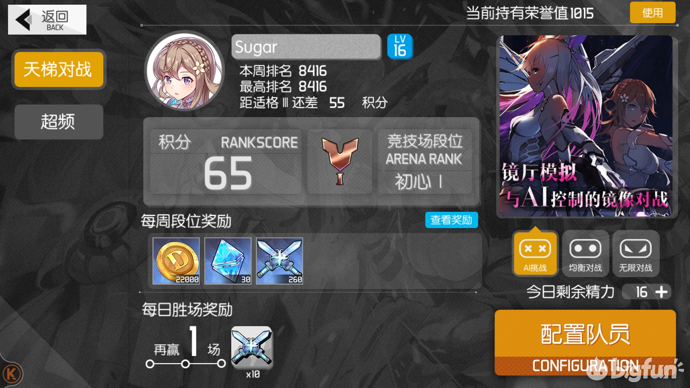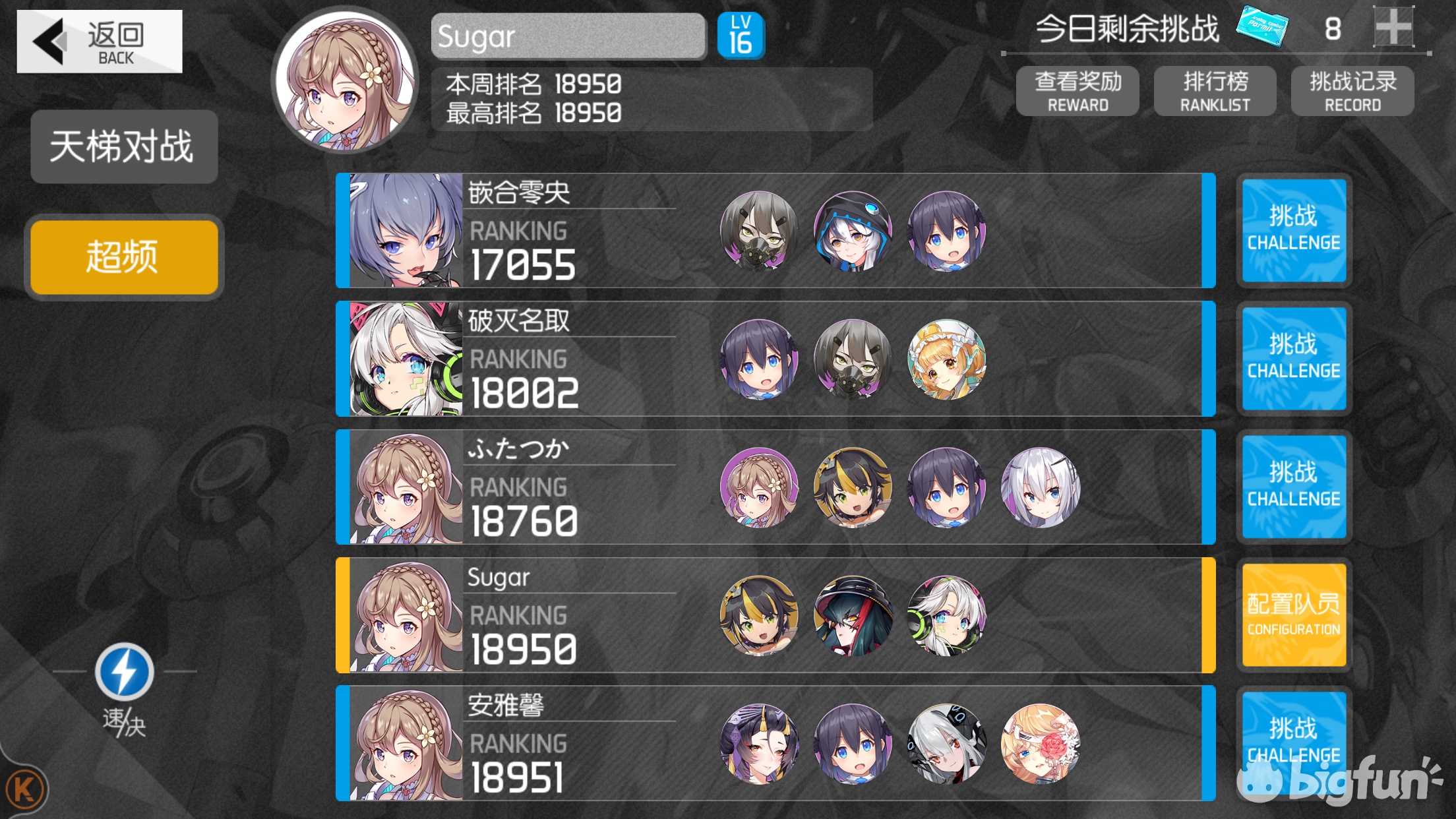 - 最后一个是超频模式,在超频模式里需要给自己的阵容布阵然后去挑战敌方的阵容。挑战成功则会有超频素材的奖励用以给你的人物进行超频提升。