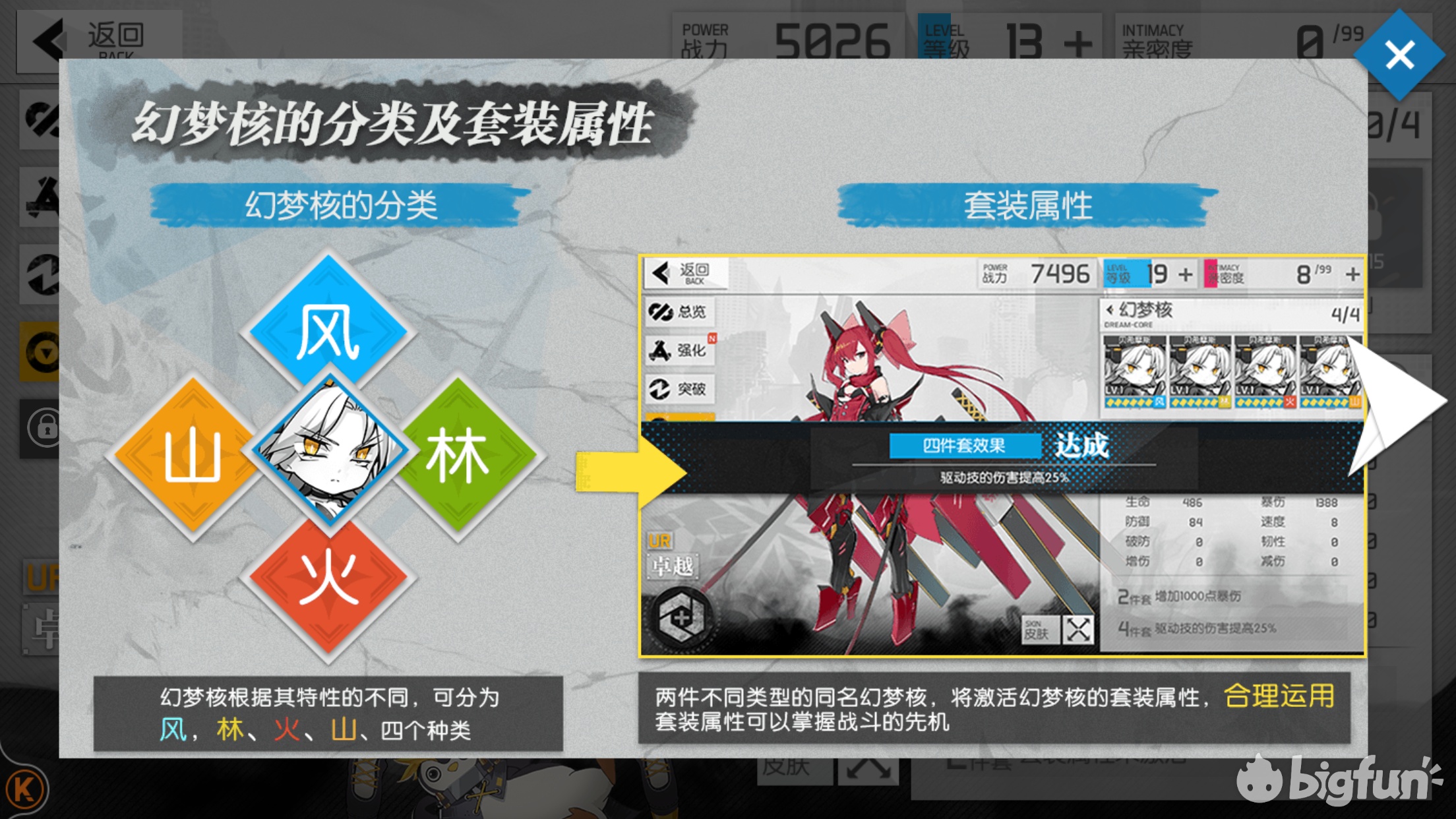 - 影响一个角色实力的因素有:技能等级、强化、突破、幻梦核、超频