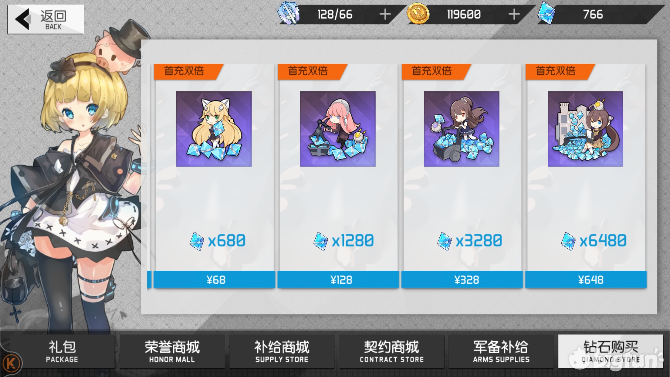 - 钻石购买来说,所有档位都有首冲奖励,一个招募核心180钻石,如果按照首冲氪金来说,想要获得一个ur角色氪金需要的花费为:180(一个招募核心花费钻钻石)/3.62%(ur概率)/2(首冲双倍) /10(1rmb=10钻石)= 248。所以在拥有首冲双倍的情况下,也需要花248块钱才能获得一个ur角色(还得是脸不黑的情况下)所以个人角色完全没有氪金的必要。当个无氪、或者月卡党就行。