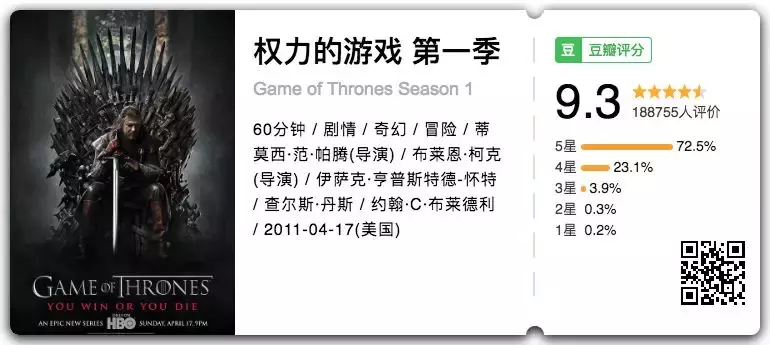 但是豆瓣上看过这部剧的人数跟《权力的游戏》的观看人数,完全不是一个数量级。