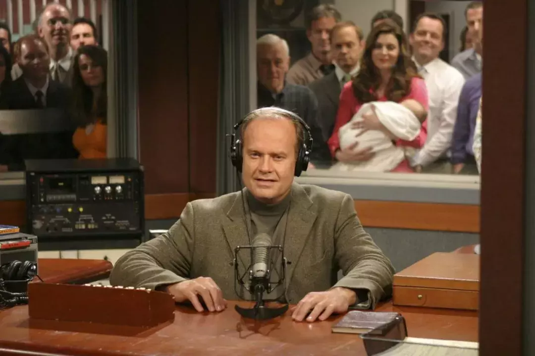 《干杯酒吧》(上图)中,弗雷泽常常跟一群狐朋狗友在酒吧里喝啤酒闲扯淡;而《欢乐一家亲》里,他最常出现的地方就变成了家里和广播电台,除了他之外的主要角色也都是他的家人、同事。