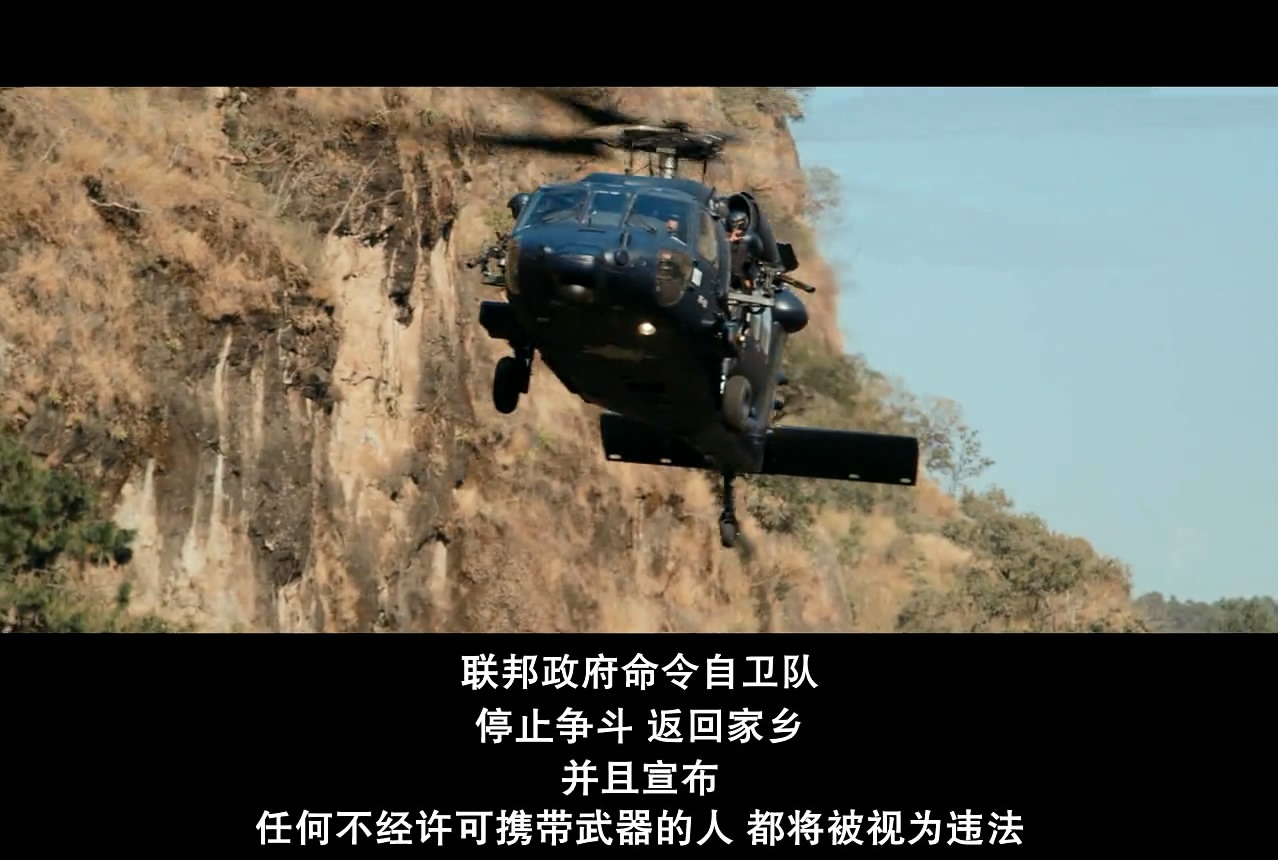 义务警察的反面是媒体,而自卫队的反面是墨西哥政府,比媒体更恐怖的是,墨西哥所谓的“国家机器”与黑帮勾结之紧密犹如水乳相融,片中村民称之为“有组织的犯罪”,