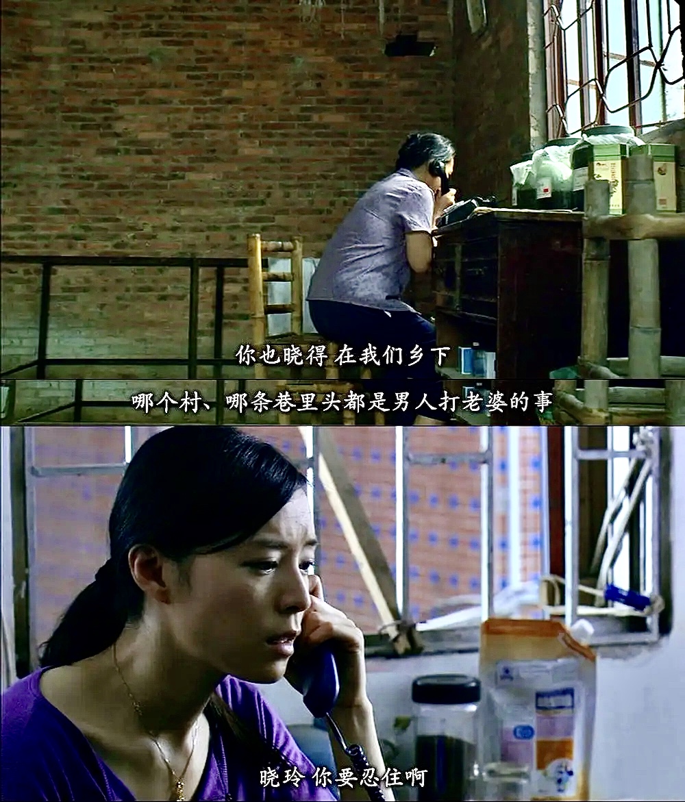 影片里,当晓玲绝望地打电话跟母亲诉苦的时候,母亲明知道女儿被打被虐待,但因为女婿曾给自己建了房子,便劝告女儿:“哪个男人不打老婆,你要忍!”
