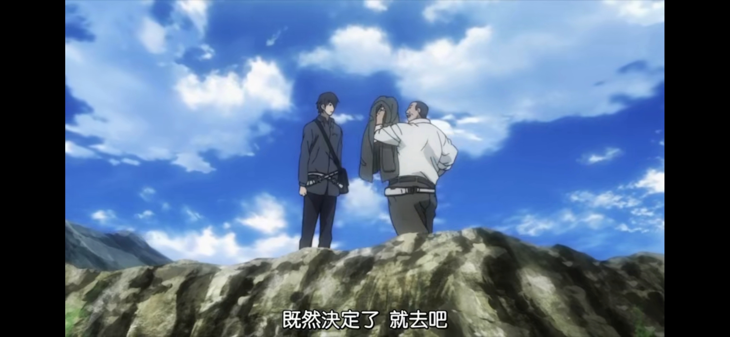 镜头来到女主卑弥呼这里。她是在游戏中结识了男主坂本的女玩家,同样也被强制带到了同一个孤岛上。在海边,她被邀请和三个男人组队。