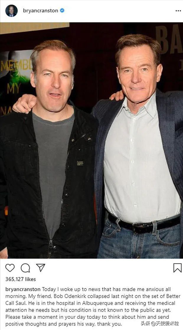 当天早些时候,他在《绝命毒师》中的合作伙伴、“老白” 布莱恩·科兰斯顿(bryan cranston)也在社交媒体上表达关切:“今天一早起来就听到这个让我焦虑了一天的新闻,我的朋友昨晚在《风骚律师》片场晕倒了。他目前在阿尔伯克基(albuquerque)的一家医院接受治疗,但目前还不知道他的病情……请大家为他祈祷。”