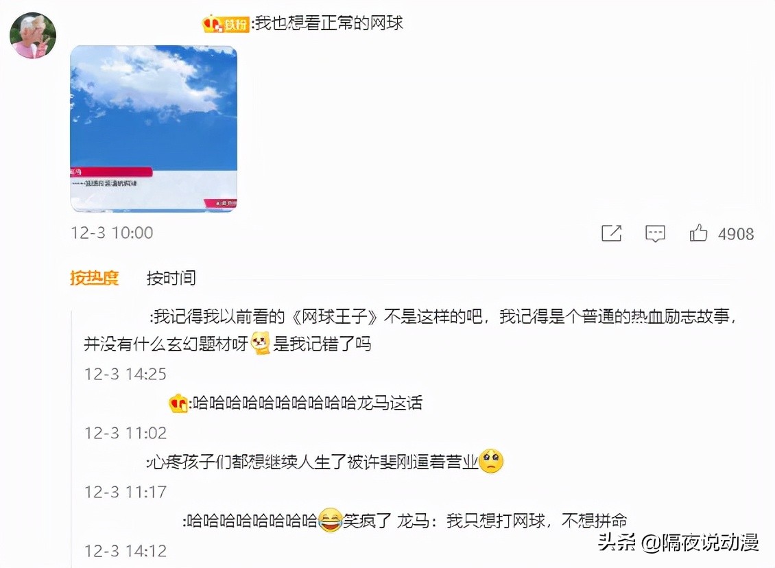 其中还有一位网友发了张手游《新网球王子risingbeat》的截图,内容是主角越前龙马的一句游戏独白:“我想打普通的网球......”