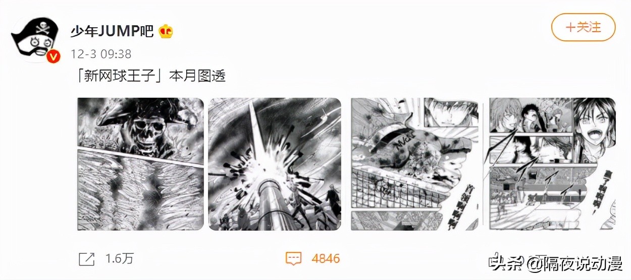 12月3日的微博上,有一些资深动漫博主发来了《网球王子》漫画的最新剧情图透,大致剧情讲的是在半决赛中,平等院凤凰拼尽全力最终击败了对手博格,赢下了这轮比赛。