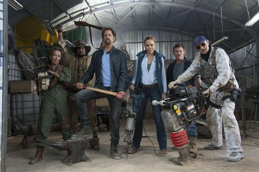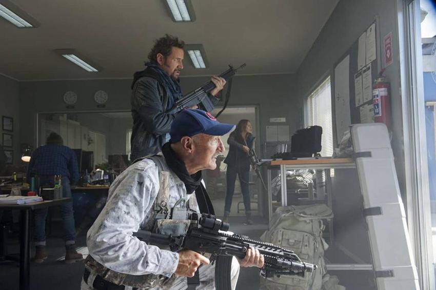 他们首先制作了一个捉地兽的集装箱,随后让一个老大妈开着飞机勾引地兽,地兽也是不挑食,开始疯狂的追杀老大妈,一不小心就钻进了集装箱里,紧接着一群人开始往地兽身上插钢管,场面那是相当凶残。不过地兽也不是吃素的,从嘴里伸出了三个触手,一群人愣是拿它没办法,关键时刻,光头哥拖着吊瓶出现,抬手就是三枪把地兽的触手给打没了。