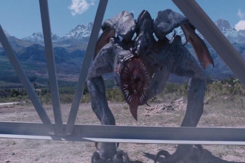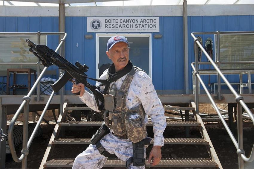 影片一开始,三个科学家闲着没事跑到北极去凿冰,天寒地冻的在家斗个地主多好,非要来北极瞎折腾,一不小心惊醒了北极冰层下的地兽,地兽的起床气非常大,从冰面窜出来直接让三个科学家领了盒饭。