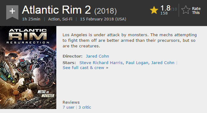 尽管《环太2》映后口碑表现不佳,但超高的人气早就被山寨公司惦记上了。《环大西洋2》早在3月15日就已经发行了dvd,从目前的北美评分来看,这部山寨电影仅有1.8分,可以说是没有最烂、只有更烂。