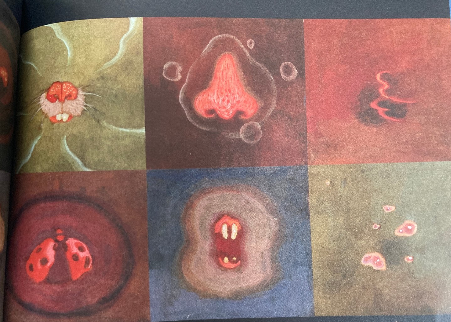 小说中用开篇的老鼠暗示了眉间尺踏上复仇道路的深层动机 – 为了拯救困在窘境任人宰割的苍生。在昔酒的绘本中,这一动机则通过眉间尺与现实交错的梦境得到了进一步加强,在亦真亦幻的清明梦中,蒙太奇手法的镜头语言下,渲染出了老鼠这一意象对眉间尺的影响。