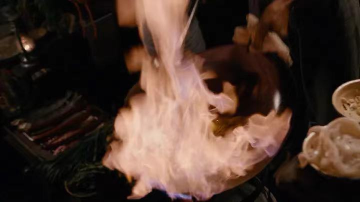这段故事让我想起了著名的电影《色戒》,在电影中,一腔热情的学生们举办了爱国话剧,在“中国不能亡”的呼声中,一组蒙太奇手法的画面切换,庆功宴的炒菜大火的场面把学生的一腔热血宣泄到了荧幕上。
