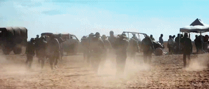 在昼夜温差能有40度,黄沙漫天的恶劣环境条件下,拍出了一幕幕令人血脉喷张的震撼场面。