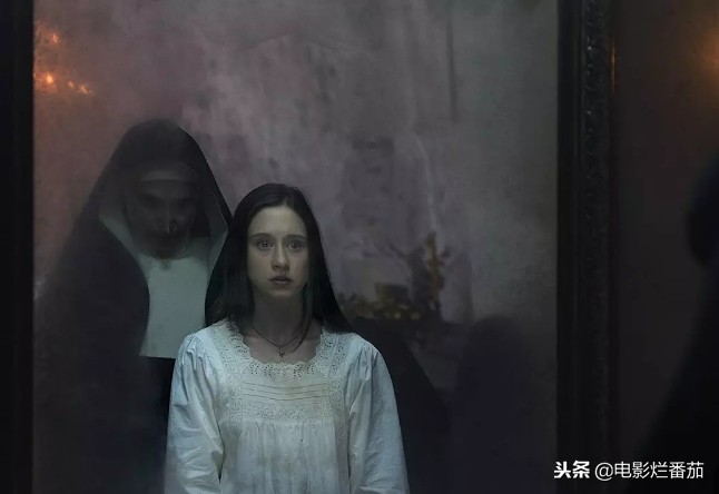 " 这时,艾琳修女正在床上被噩梦惊醒,起床的她战战兢兢地发现自己被锁的房间里坐着一个黑衣修女,手里拿着最初小修女自杀时拿着的手串。