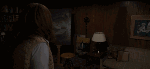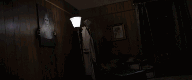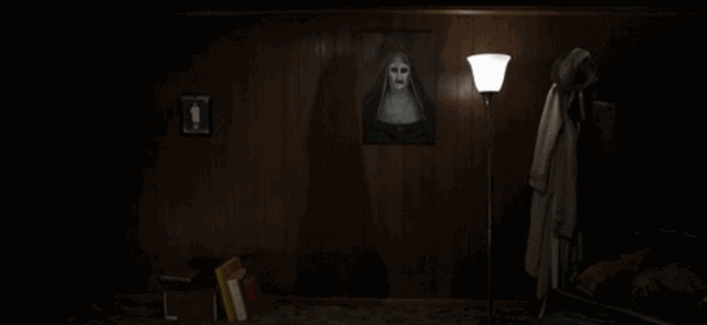 其次,《招魂》中的鬼修女,几乎都以一种观众不可预料的形式出现,温子仁很精准地操纵着观众的心理盲区,比如:先以影子出场,跟女主玩玩灯下漫步,