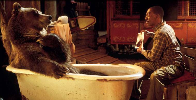 看过第一部自然忍不住看要第二部,更何况还有阿诺所主演的狗熊的参加。美国人很擅长这类的喜剧电影。不需要丰厚的投资,不要求宏大的布景,把这些留给《指环王》与《哈利-波特》那种电影好啦。这里翻来覆去是只是几个场景,甚至用厂景代替外景,道具就是生活中我们手边的东西。但看电影的人都会被影片无处不在的美国式幽默感染。不需要你哈哈大笑,但令你不时莞尔。还有,影片中总会含有一些对社会很负责任的内涵,比如这部中的环境保护与家庭温情。