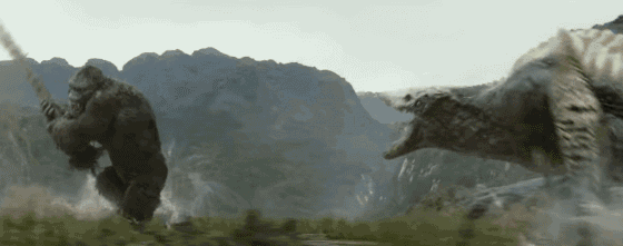 有人把大猩猩怪兽化处理,有人把大猩猩还原为本来的样子,科幻片《2001太空漫游》里就出现了智力启蒙阶段的大猩猩,配上惊悚音乐,观众能感受到世界末日般的荒凉、悲惨、绝望,而部分猩猩便是在这种极端境遇中受到启发,开始使用工具并以此攻击对手。