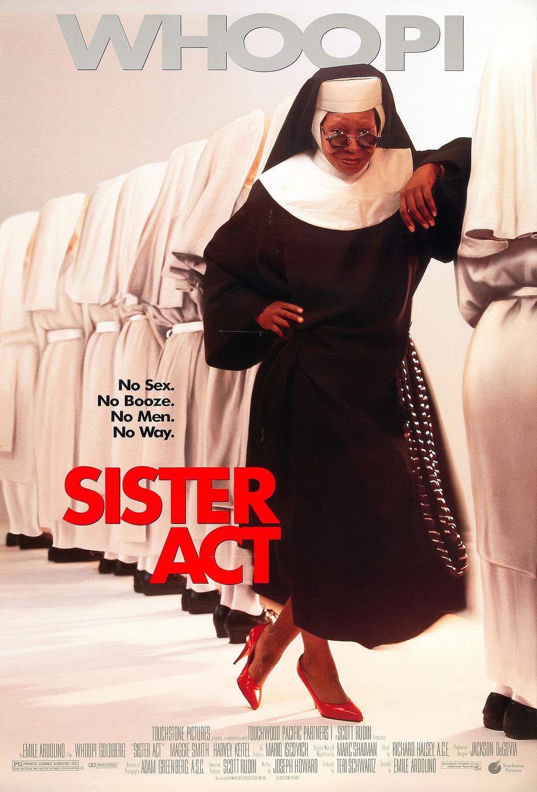 这部电影是一部老的喜剧片,拍摄于1992年,讲的是夜总会女二流歌手迪劳丽丝,因意外目睹一桩谋杀,被黑帮老大追杀,后来,她为逃脱杀手追击求助警方,警方为保护她,把她安排进一所修女院。因为修女院的沉寂和冷清,让一向好动的迪劳丽丝无法忍受,于是晚上偷偷跑出去唱歌跳舞。院长担心她出事,将她安排到唱诗班,她又嫌唱诗班异常糟糕,决定动手改造,于是在做弥撒(天主教的宗教仪式,意思是聚会,聚集)时,唱诗班高唱起流行歌曲,歌词已经改成赞美天主,没想到,此举竟受到教友的热烈欢迎,并引来教宗专程前来欣赏。再后来,因为修女院这样的创新举动,被新闻报道,迪劳丽丝藏身处被发现,于是再次逃跑。