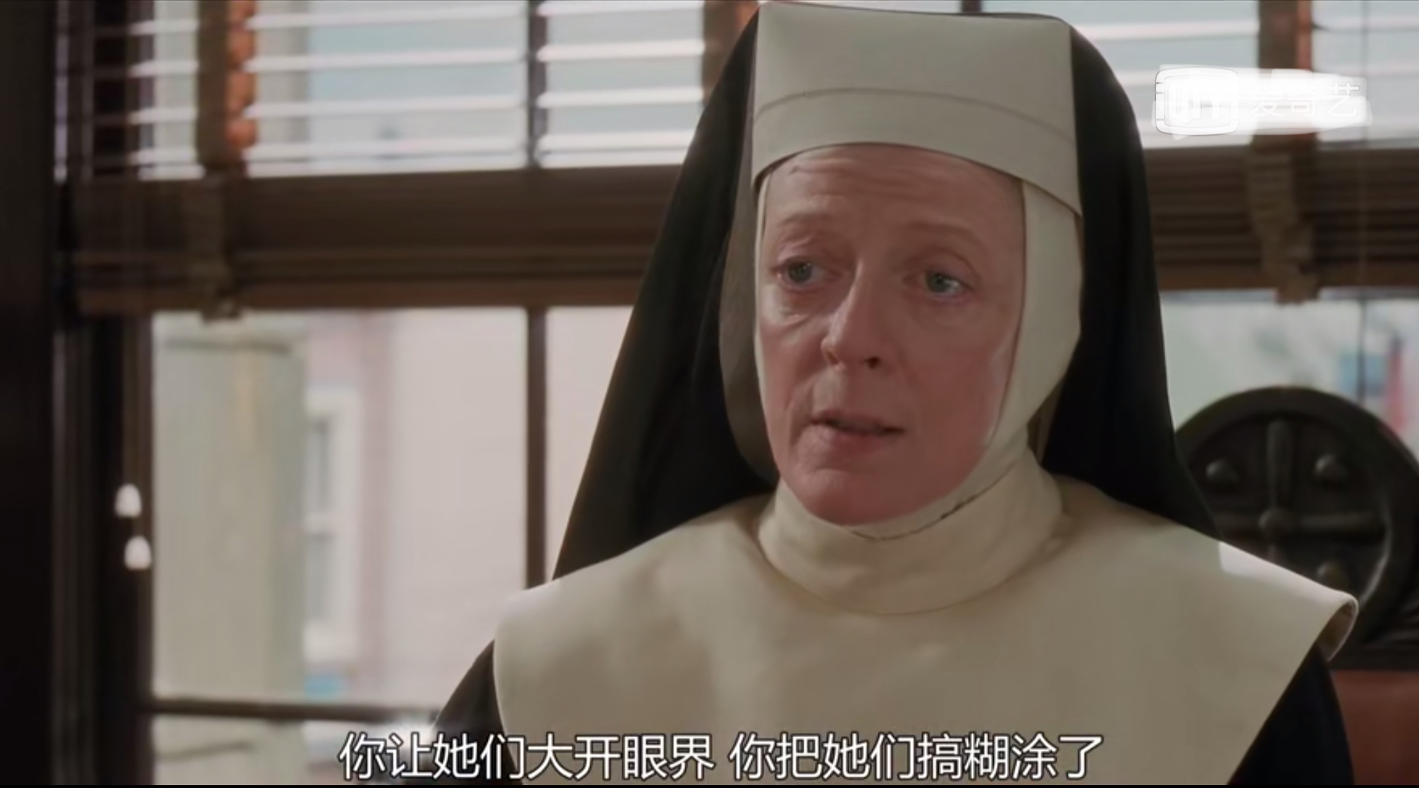 就像影片中给主角迪劳丽丝送闹钟的另一个修女,她说自己内心有种真诚的奉献精神,准备一辈子做修女,但她马上意识到“这样是不是不好,是不是有点骄傲?”