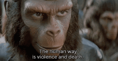 到了《猩球征服》《猩球崛起》《人猿星球》,已经彻底把猩猩人类化了。