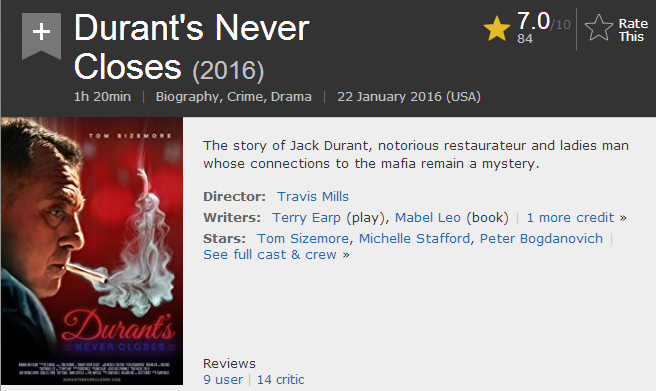 杜兰曾是黑帮成员,后来开了一间餐馆。如果片中透露出来的信息是对的,那么这是一个真实的人,真实的故事,而餐馆现在还在营业。