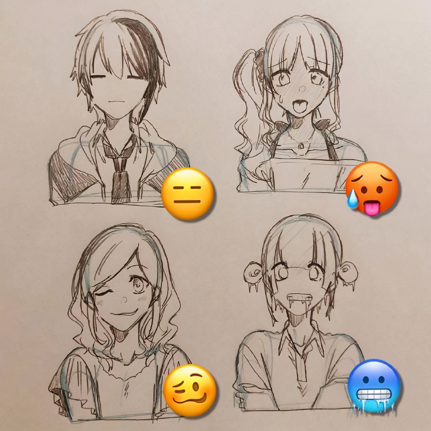 至于诸位角色们的特性,我都已经想好了,既然是表情包拟人的,那么角色性格就和原本的表情包类似如何?微笑的妹子就平时没事就喜欢笑,喜欢发怒的平时脾气就很火爆,最妙的是类似狗头啊、阴阳怪气一类的,平时表情就很扭曲,岂不妙哉?