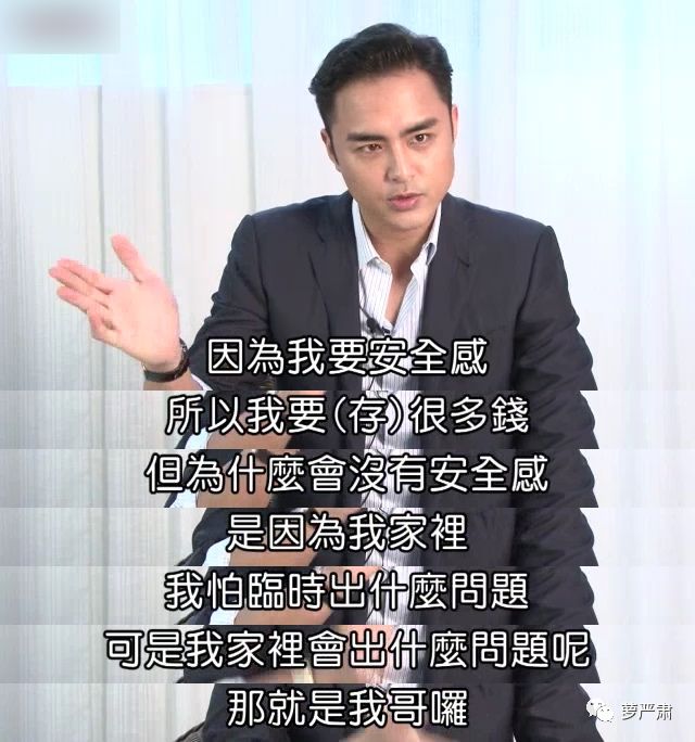 明道在2013年经过被公开索债的风波之后,整理好了心情才对媒体坦白说,自己没有安全感,不停存钱,就是怕“临时出问题”,所谓的临时出问题,就是哥哥。