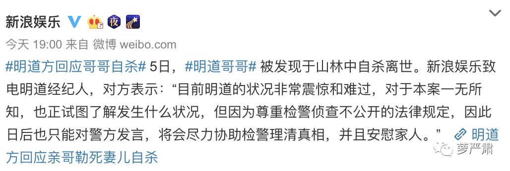 明道经纪人随后回复了媒体,说明道非常震惊和难过,对本案一无所知,日后只能对警方发言。