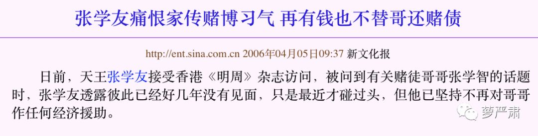 哪怕是公开说不再支援哥哥的张学友,讲话多么果决干脆,也会再补上一句:“他在我出道时帮过我、照顾过我,我钱不够用时,也借过钱给我,但后来成了我的助手,肯定很委屈。至今对哥哥仍有一分歉疚。”
