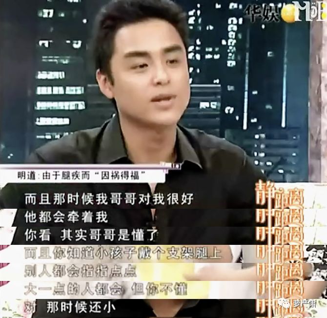 明道对哥哥是非常有感情的。明道就读幼儿园时腿脚不方便,全靠哥哥每天背他、牵着他上下学,2008年他上《非常静距离》都很开心回忆起哥哥对自己的好。虽然算起来那时也是在帮哥哥填无底洞,不过他都只愿意说哥哥的好。