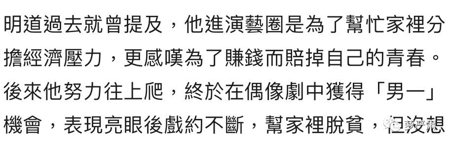 明道曾说,进演艺圈就是为了帮家里分担经济压力,也感叹过自己为了赚钱而赔掉青春。