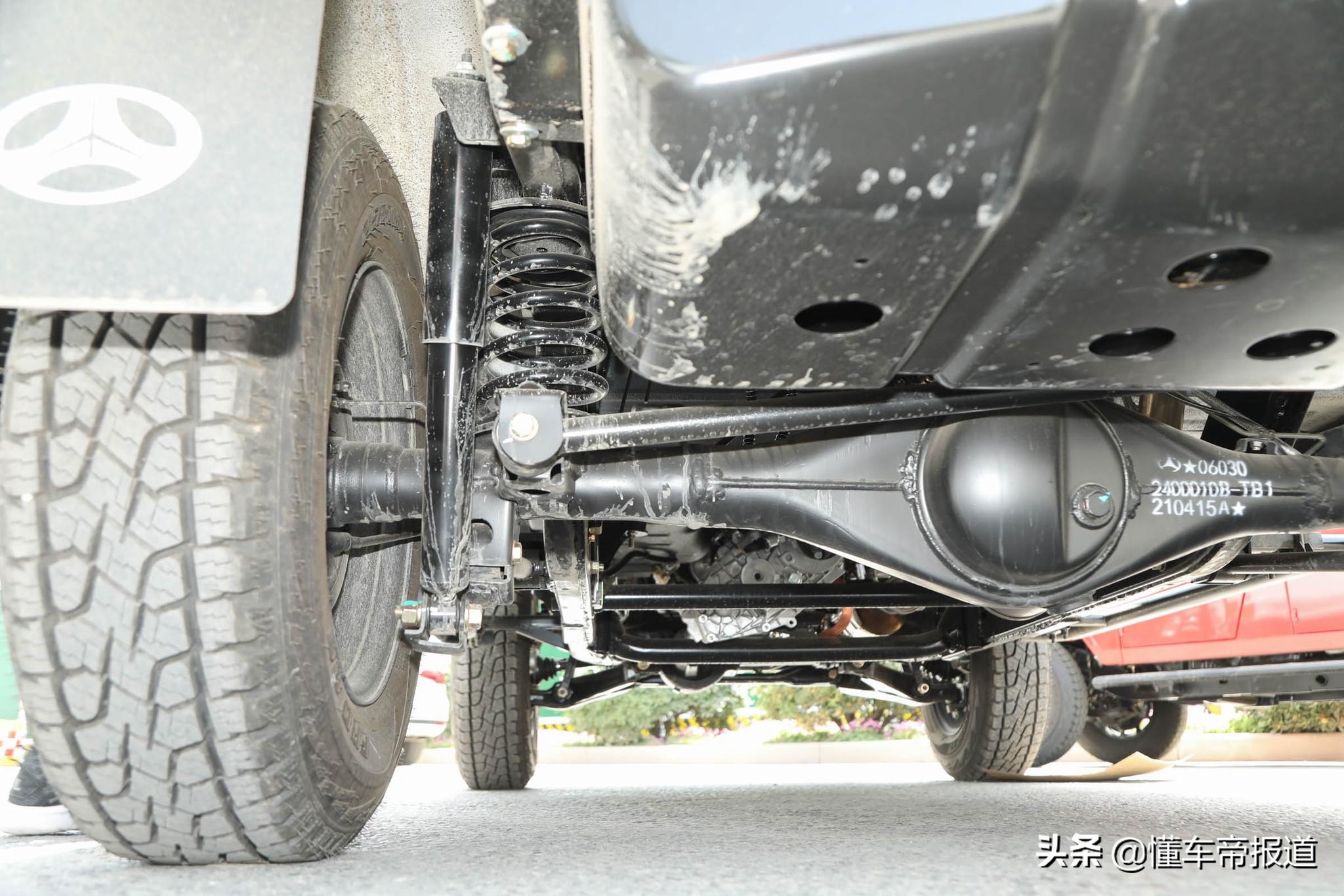经过去年的大改款,bj 212系列从前后“硬桥”,调整为前双叉臂式独立悬架,后悬架继续保持整体桥式非独立悬架结构,刹车系统为前盘后鼓,并继续采用机械分时四驱系统。