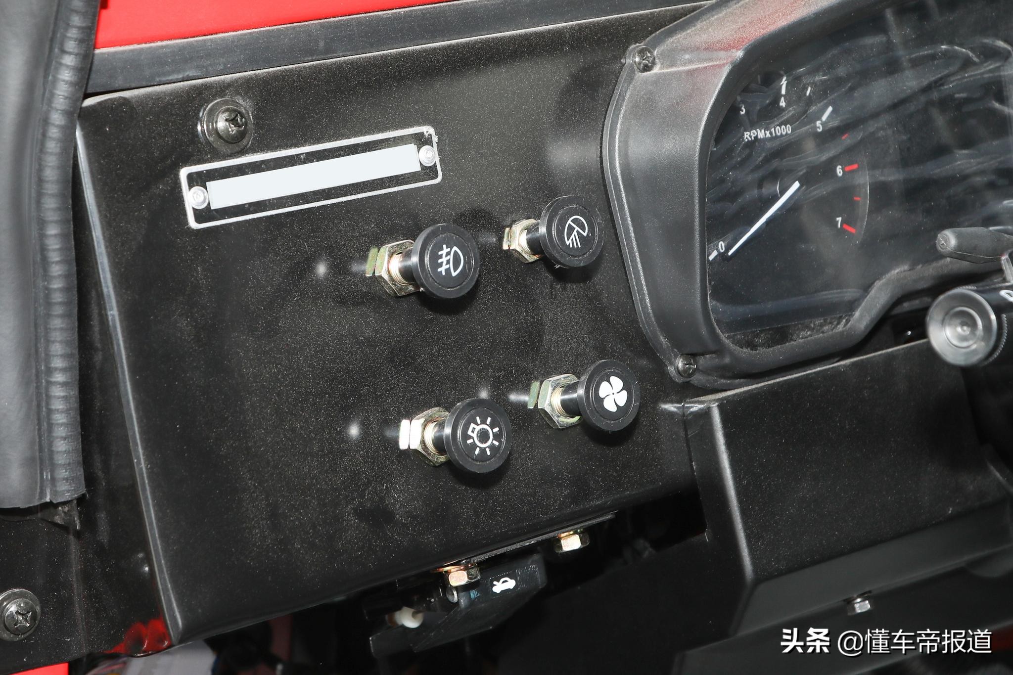 同时,在具有年代感的粗犷内饰处理方式下,很多内饰元器件裸露在外,包括雨刷电机、车内空调管路以及车内线路、线束接头等。当然,北汽制造在大改款bj 212车型上已大幅优化了这样的粗犷式设计,不过在这款致敬版车型上再次使用这样的处理方式或许也是刻意为之。