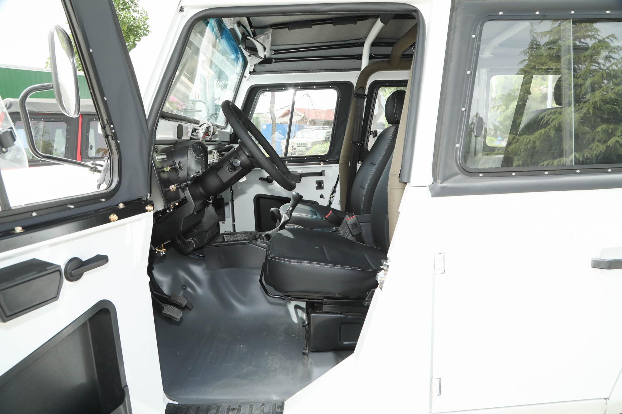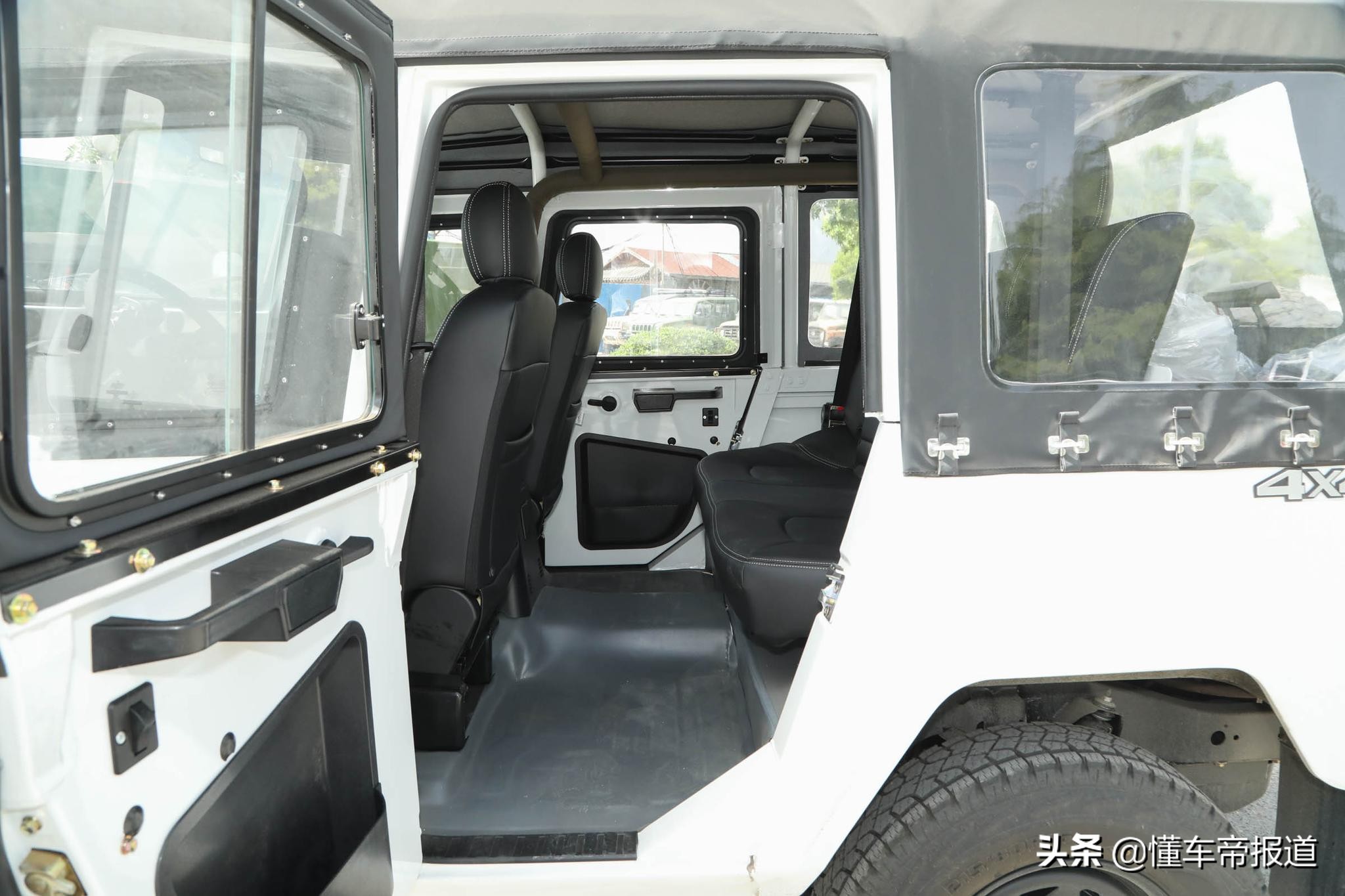 延续老款bj 212车内设计,新车内饰并非时下车型的整体包覆式处理,因此可看到与外观同色的诸多车身结构件,包括前挡风车窗边框、a柱、门板甚至前部防火墙。
