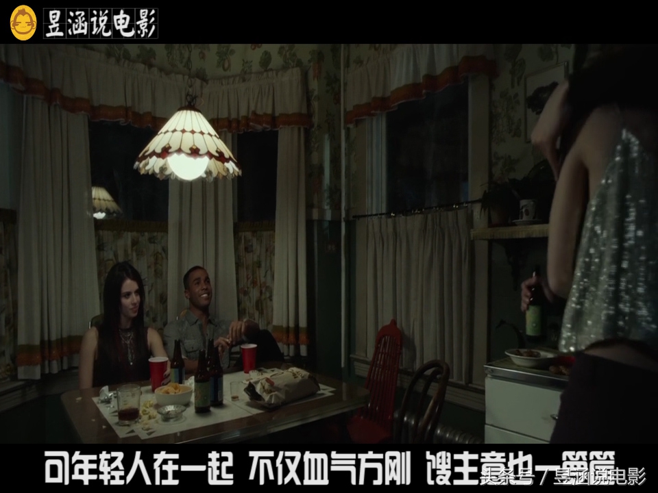 画面一转场,金发妹,黑蛋哥,大眼哥一行三人,就来到他们新租的公寓,年轻人吗,为了庆祝乔迁之喜,那必须得来场热闹的party。可我越看就越搞不清楚关系,大眼哥和金发妹是男女朋友,黑蛋哥又在金发妹身上寻花问柳,大眼哥又和黑蛋哥是多年的老基友。你说让我这老解说怎么能懂。