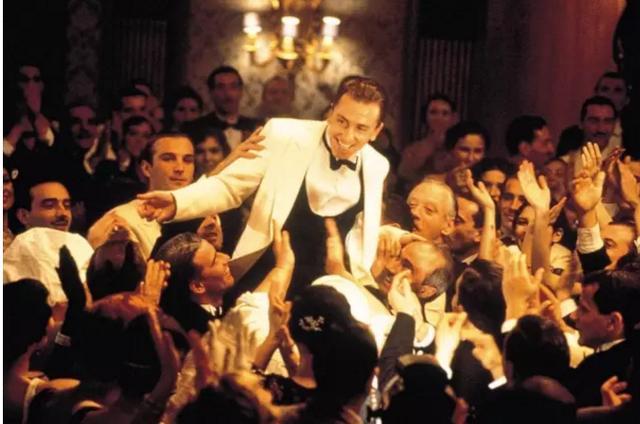 在电影中有这么一幕,台风来临直视,船上十分的颠簸,可是男主角1900却“驾驶”着一家三角钢琴,在宴会厅里舞蹈演奏,头上的水晶灯虽然摇摇晃晃,但是仿佛也是在伴随着钢琴的节奏频频摆动。