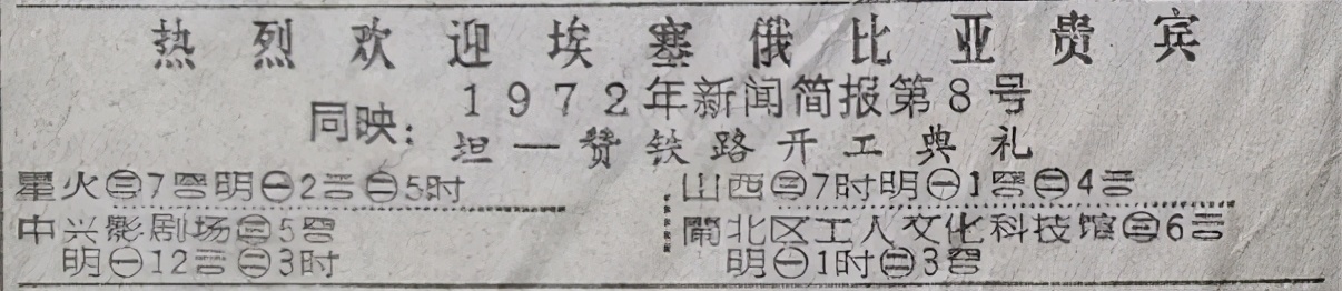 另一部纪录片《热烈欢迎埃塞俄比亚贵宾》,则纪录了埃塞俄比亚帝国皇帝海尔·塞拉西一世1971年10月6日到达我国首都北京进行国事访问的新闻事实,新华社通稿中称: