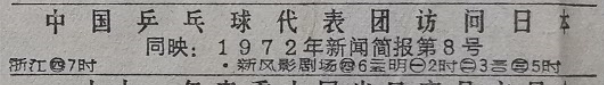 “由中央新闻纪录电影制片厂摄制的《亚非乒乓球友好邀请赛》、《热烈欢迎埃塞俄比亚贵宾》、《文化大革命期间出土文物》等三部彩色纪录影片,将从二月十五日起在北京和全国各地陆续与观众见面。”
